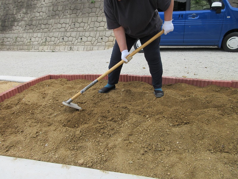 そらのいろのお庭にお花、野菜を植えるので、花壇に土を入れ耕しました!